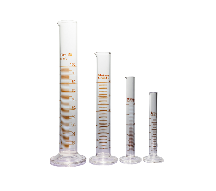 Calibrated “To Contain/To Deliver” at 20°C Translucent cylinders Molded-in large, easy-to-read graduations, Large round base ribbed for reinforcement and stability, Generous pour spout; 10mL size has a cone-shaped top for easier filling and pouring, Non-wetting Chemical resistant Contact-clear