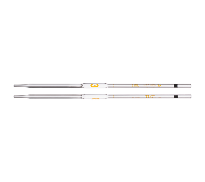 Also called bulb pipettes or volumetric pipettes, single-stroke pipettes are calibrated to Class A tolerances Made from soda-lime glass with machined jets to reduce blockage Amber spot markings are diffused across the glass surface for increased chemical resistance.