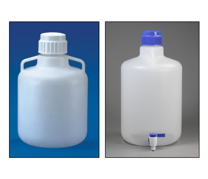 Polypropylene Carboy equipped with leak-proof Spigot screwed to the body. These Carboys are autoclavable and durable. Suitable for storing and dispensing distilled water and other laboratory solutions.